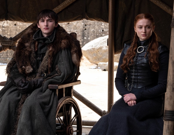 The photo is of the three Stark siblings. There's Arya Stark (Maisie Williams), Bran Stark (Isaac Hempstead-Wright) and Sansa Stark (Turner), taken at the meeting of all the great houses in Westeros. It was the last scene they shot. And it's not just any photo, it's begging for you to spot the out of place elements. There's Williams sunglasses, Hempstead-Wright's legs and Turner's Juul vape. And the water bottle. Is it the water bottle that made it into the scene? Who knows.