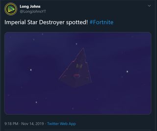 Even better, a Star Destroyer has appeared in the sky over the Fortnite map.